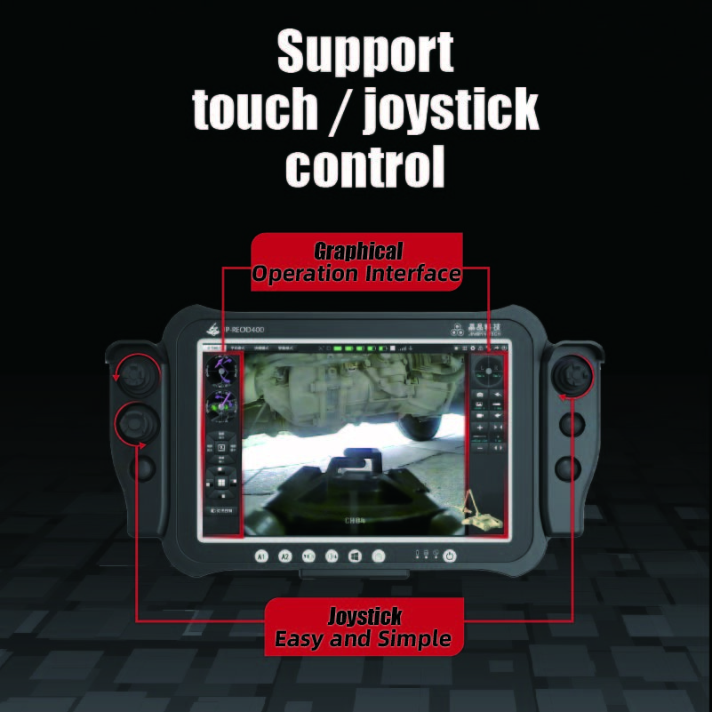 La progettazione grafica del controllo touch/joystick è attualmente una delle principali soluzioni di controllo dei robot per lo smaltimento delle bombe a livello internazionale.È stato molto riconosciuto dagli utenti per la sua interazione più user-friendly e funzionamento affidabileLe sue caratteristiche principali sono le seguenti: