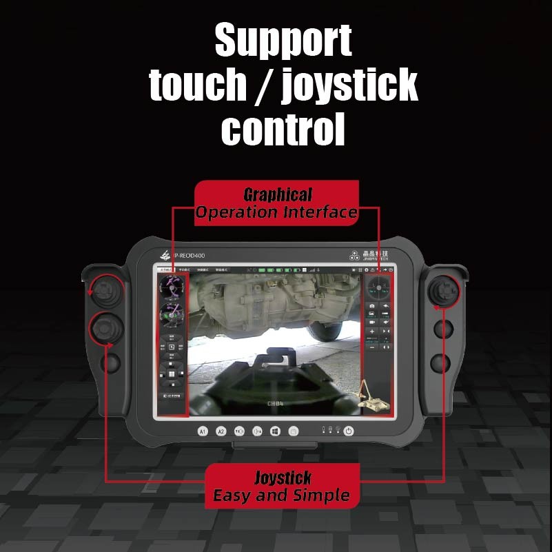La progettazione grafica del controllo touch/joystick è attualmente una delle principali soluzioni di controllo dei robot per lo smaltimento delle bombe a livello internazionale.È stato molto riconosciuto dagli utenti per la sua interazione più user-friendly e funzionamento affidabileLe sue caratteristiche principali sono le seguenti: