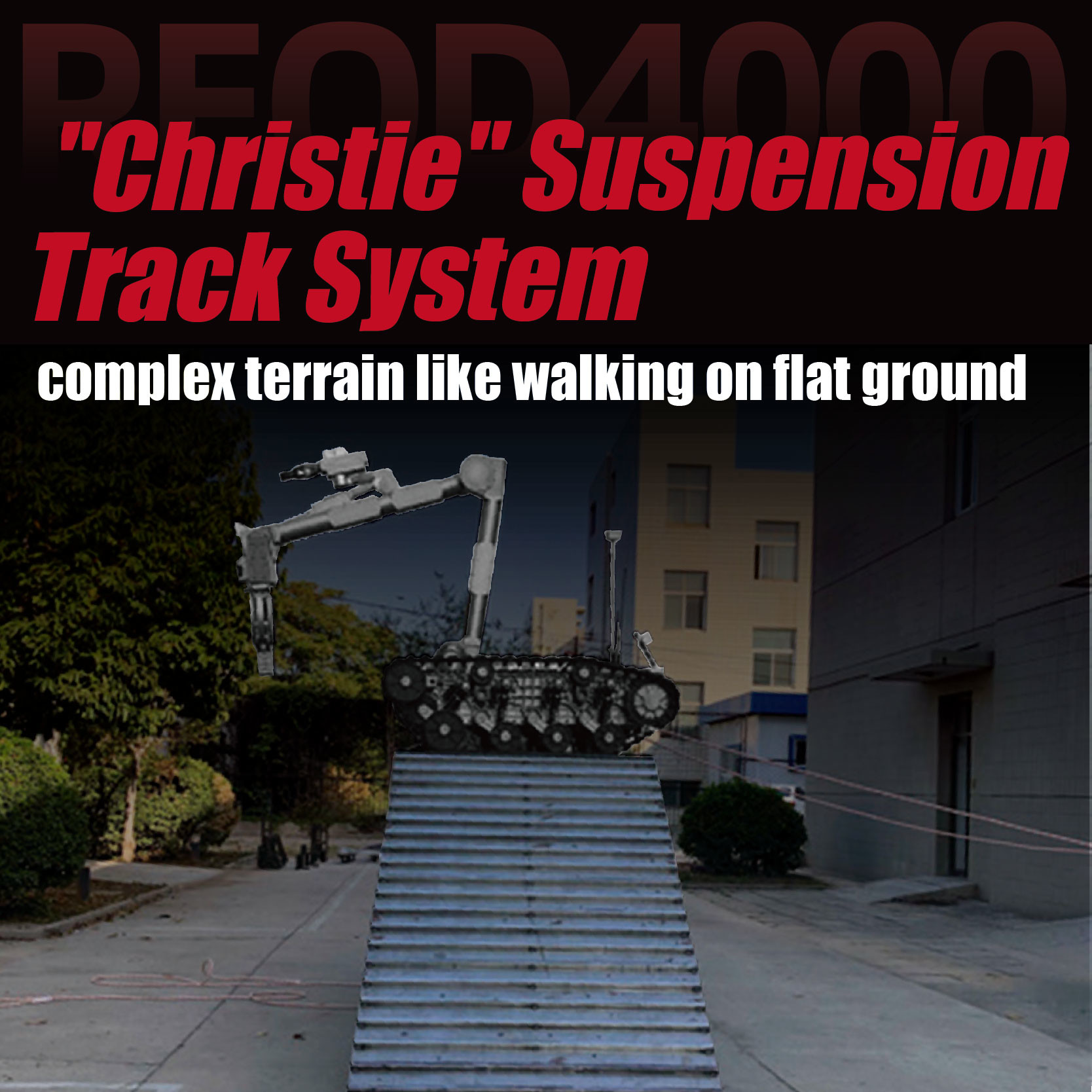 Il robot JP REOD4000 EOD è una soluzione avanzata di medie dimensioni per lo smaltimento di ordigni esplosivi (EOD) in ambienti ad alto rischio.permette agli operatori di gestire gli oggetti pericolosi con precisioneIl sistema di sospensione "Christie" offre una manovrabilità senza soluzione di continuità su terreni irregolari e complessi,rendendo il REOD4000 adatto per gli ambienti off-road e difficiliCon un peso massimo di 200 kg, supera significativamente le sue controparti, offrendo un supporto affidabile per lo smaltimento degli esplosivi, la sicurezza pubblica e gli scenari di risposta alle emergenze.